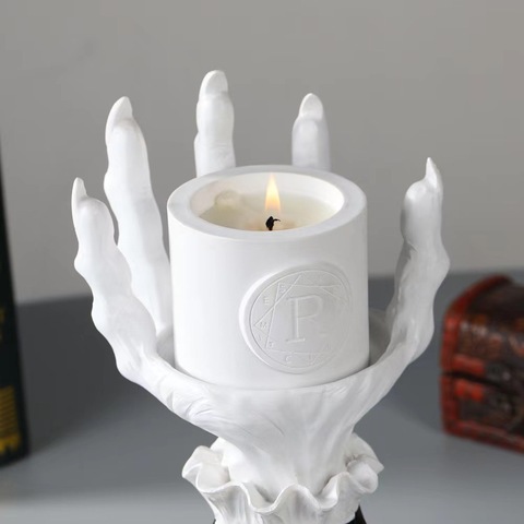 Ingrosso nuovo portacandele decorativo in resina di Halloween, portacandele da strega, vassoi da scaffale, stand da basket